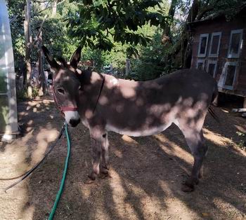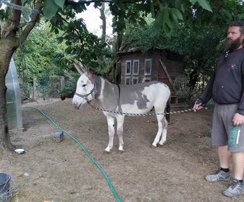 hřebec původem ze ZOO Sedlec, nar. 1.6.2021, barva šedo-červeno-bíle strakatá s lucernou/ Skewbald, oslí kříž