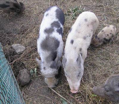Vlevo je taťulda Chrochtík, kaneček, vpravo mamča prasnička Binky.