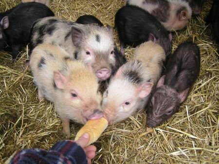 Selátka miniprasátek se narodila 4. a 5.9.2014. Narodilo se celkem 9 selátek - černé Terezce 5 (2 holčičky a 3 kluci) a puntíkaté malé Barušce 4 (2 kluci a 2 holčičky). Otcem obou vrhů je malý Chrochtík z vrhu 9 již prodaný, matkami jsou malá Baruška z vrhu 10 již prodaná a Terezka po Montym a Blackii., fotky vše rodičů jsou zde pod tímto textem. KOUPÍ SELÁTEK PODPOŘÍTE OSTATNÍ ZVÍŘÁTKA V NAŠEM ZOOKOUTKU, závislá na prodeji odchovů. Při zájmu volejte na 731407080, nebo pište na dvornizookoutek@seznam.cz |