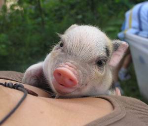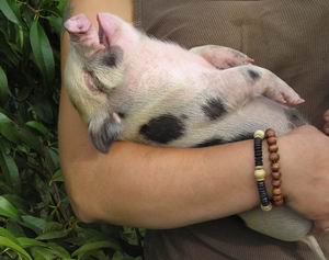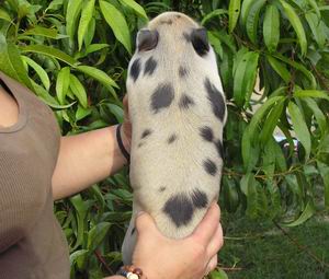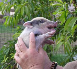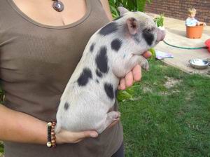 Máme na prodej miniprasátka ze dvou vrhů. Matkami jsou Binky a Baruška, otec Chrochtík, všichni rodiče jsou registrováni v Českém klubu majitelů prasátek chovaných v domácnosti, jsou čipováni klubovými čipy a vedeni v seznamu prasátek na stránkách klubu a Státní veterinární správy. Kromě toho naši čuníci pocházejí z registrovaného hospodářství a budou tetovaní. Vrh po Barušce je narozen 28.7.2011 (na videu s modrou tečkou) a po Binky 01.08.2011 (na videu s červenou tečkou). K odběru jsou selátka na přelomu srpna a září. Selátka jsou focená již odrostlejší a proto vypadají větší než předchozí vrhy focené den po narození. Na videu jsou ve věku 5 dní (po Barušce) a 1 den (po Binky).
