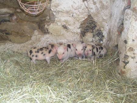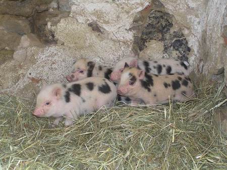 Selátka miniprasátek se narodila 28.03.2013. Otec je Chrochtík, puntíkovaný kaneček 22 kg a 38cm v kohoutku, matka Binky, puntíkovaná prasnička 18 kg a 38 cm v kohoutku, oba registrovaní. Celkem byly na prodej 3 prasničky a maličký kaneček, k 26.4.2013 zbývají 2 prasničky a kaneček. Všichni jsou očkovaní a ošetření proti parazitům. Všechna selátka jsou již prodaná, podívejte se na další vrhy. |