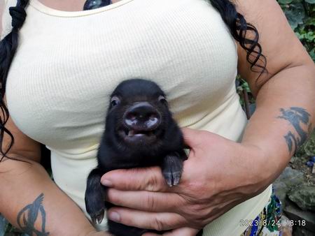 Selátka miniprasátek se narodila 9.8.2023, jsou čipovaná. Otec je Virgil (vrh 67, maličký, nadějný, v 1,5 roce váží jen 5 kg, stále v růstu, v dospělosti počítám kolem 11 kg), matka Karla (vrh 61), váha 19 kg. Rodiče jsou kvalitní miniprasátka, patří k nejmenším v ČR. Odchovy mají cenový rozptyl podle předpokládané velikosti v dospělosti. Čím je vyšší předpoklad, že bude miniprasátko v dospělosti menší, tím vyšší je jeho cena. Nedokážu ale přesně určit, jak které vyroste.