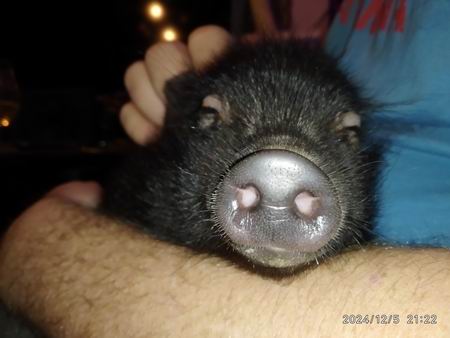 Selátko miniprasátka se narodilo 30.9.2024. Otec je Tapírek 4 roky, matka Berta II. 2 roky. Berta bohužel zemřela při tomto svém prvním porodu. U mrtvé maminky v boudě jsme našli 1 živé selátko, černou holčičku. Bránila se, kousala a kvičela první tři týdny dokrmování s takovou vervou, že mne to stálo obrovské úsilí, spánek a nervy, ale povedlo se. Ve chvíli, kdy dělám tuto stránku, má už malá Eliška 5 měsíců a zatím bydlí s námi doma, protože venku je zima. Já tak sbírám zkušenosti s chovem prasátka v bytě. Zároveň jsem si na vlastní kůži vyzkoušela, jak funguje karma. Den před narozením Elišky jsem totiž odmítla ručně dokrmené několikaměsíční prasátko s tím, že to bude nějaký "podražený zmetek". Karma, zdarma. KOUPÍ SELÁTEK PŘISPĚJETE NA NÁKUP KRMIV PRO OSTATNÍ ZVÍŘÁTKA V NAŠEM ZOOKOUTKU. DĚKUJEME VÁM!!! |
