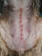 Bohužel žádné další fotky nebudou. Dne 7.9.2006 nám malá Adélka zemřela. Dřív jsem neměla sílu o tom psát a i teď to bolí. Udusila se kouskem kuřecí chrupavky a i přes mou snahu to z ní vyklepat, jsem jí nedokázala pomoci. Půl hodiny jsem jí dávala umělé dýchání i masáž srdce a mezitím objela s pomocí jedné cizí paní oba veterináře, kteří bydlí poblíž, ale ani jeden z nich nebyl doma. Mezitím z ní život pomalu vyprchával a já jsem tomu mohla jen přihlížet. Nikdy si nepřestanu vyčítat, že jsem jí nenechala jen na granulích pro štěňata. Běhala v kuchyni mezi fenečkama a měla na to velkou chuť, tak jsem jí chtěla přilepšit a takhle to dopadlo. Cítím se hrozně. Když byla mrtvá, vystlala jsem jí krabičku a položila jí tam s nadějí, že se snad stane zázrak a ona ožije. Její maminka Beruška k ní ještě pár hodin chodila a olizovala jí čumáček a očíčka a pokoušela se jí probudit. Nechápala proč si s ní dopoledne hrála a teď pořád spí. Je několik věcí, které si budu celý život vyčítat a tohle je jedna z nich.