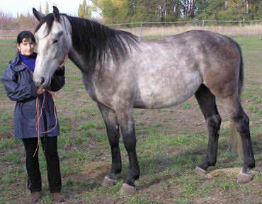 Narozen 21.03.2000. Jeho maminka Sally je Samova pravá sestra. Velmi si spolu rozumíme, k ostatním členům rodiny není tak důvěřivý. Vyrůstá u nás od listopadu 2000, tj. od hříbátka. Kupovali jsme si tehdy od chovatelky jen Samíka, ale protože vyrůstali spolu a on tam tak smutně koukal do zdi, bylo nám ho líto že bychom je oddělili a řekli jsme si, že si je vezmeme společně. Že stejně není dobré, když hříbě vyrůstá samo. Od malička byl spíš zádumčivý, ale podařilo se mi ho po mnoha a mnoha hodinách úzkého kontaktu přesvědčit, že ho mám ráda a že se mně nemusí bát. Hodně jsme se mu v dospívání věnovali, chodili na vodítku na procházky a zvykali na psy, lidi, auta, silniční provoz atd., takže při obsedání nebyl absolutně žádný problém. Nedovedu si představit, jak by povahově vypadal, kdyby vyrůstal někde na hříbárně, kde by dostal jen nažrat a 3 roky by se toulal po pastvinách.