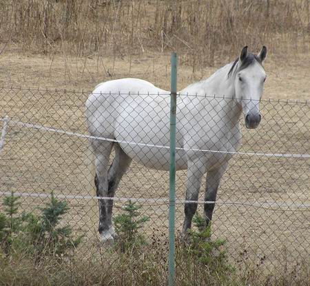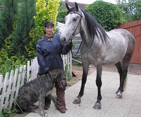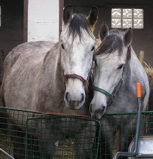 Fakt je, že dnes už se tomu směji, když se schválně plašil a cestou do ohrady jsme si připadali jako v kovbojce když nás vláčel po břiše 20 metrů na vodítku nebo skákal jak srna a my dělali krok na zemi a dva ve vzduchu. Tehdy to odnesl jen zlomený malíček a od té doby jsem věděla, že se vodítko nemá omotávat kolem ruky. Další dobrá věc byl štajgr, to by člověk nevěřil, jak mnoho může udělat taková malá věcička. No přesto, že jsme před koupí koní přečetli asi 5 knih a vyptávali se koňáků na kde co, realita byla drsná. Ono taky vzít si pro začátek na výchovu 2 hřebečky bylo šílené, ale neustálým študováním knih a časopisů o koních, návštěvami koňských akcí a určitou dobou i jízdárny (příšerná zkušenost) jsme se do toho dostali a možná je to i dobře že jsme samouci co se týče výchovy, protože nejsme ovlivněni zažitými zvyky rádoby koňáků, při jejichž radách mi vstávají vlasy na hlavě. Dost mně překvapil i názor mladíka, (několik let údajně jezdí v jezdeckém klubu) který u nás zvonil v 6,00 ráno (a vzbudil mi mimino), s otázkou, jestli víme že venku prší, že máme koně v ohradě. Je to hrozné, když člověk, který se tak dlouho motá kolem koní neví, že déšť koně opravdu nezabije a že ho koně dokonce vyhledávají. Navíc naši koně jsou dostatečně otužilí a zvyklí již od hříbat pobývat venku za jakéhokoliv počasí a pouze při extrémních zimách, větrech apod. jdou domů do stájí. Určitě jim to prospívá a cítí se mnohem lépe, než kdyby byli zavření celý den ve stáji a ven chodili jen na vyjížďky (na ty teď moc času není).