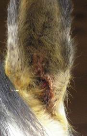Tak během zimy se ouško dalo úplně do pořádku, nevím, jestli to mušky nakonec nějak vyčistily, ale v každém případě se vše zacelilo a od roku 2006 až doteď (zima 2009) je to úplně v pořádku a už to ani není vidět. Pokud si chcete prohlédnout další fotografie, podívejte se do společné fotogalerie.