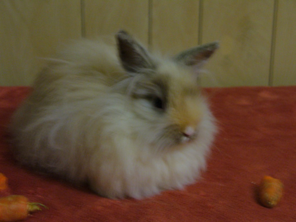 zakrslý teddy, (gelb) žluto? - bílá holandská, bílá na špičce ucha