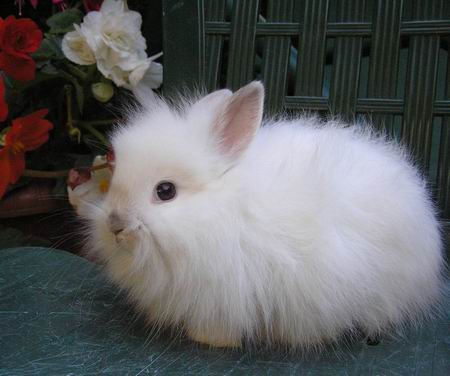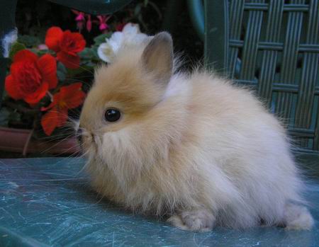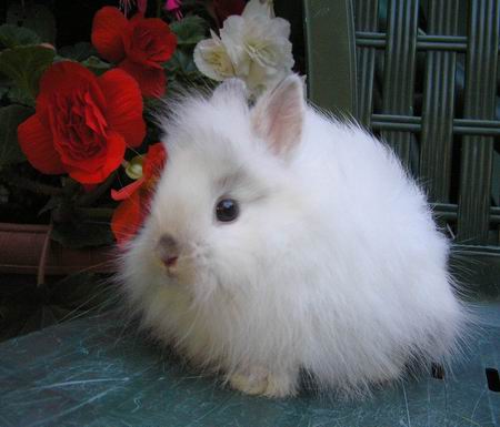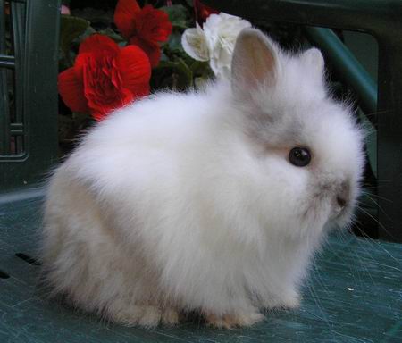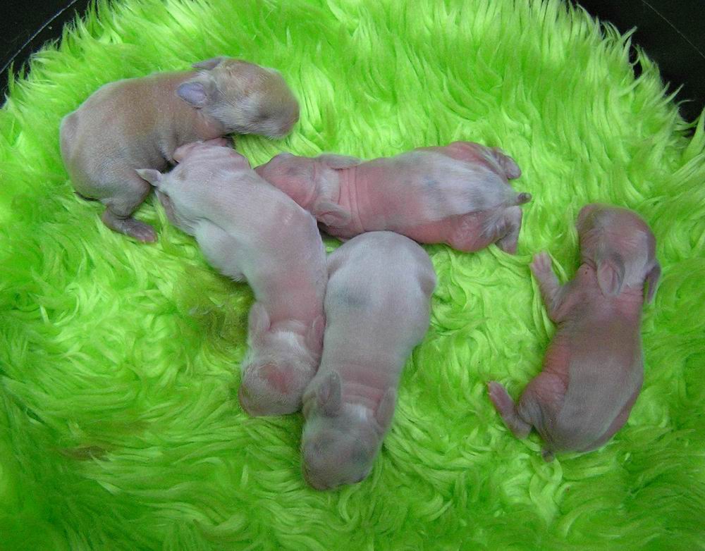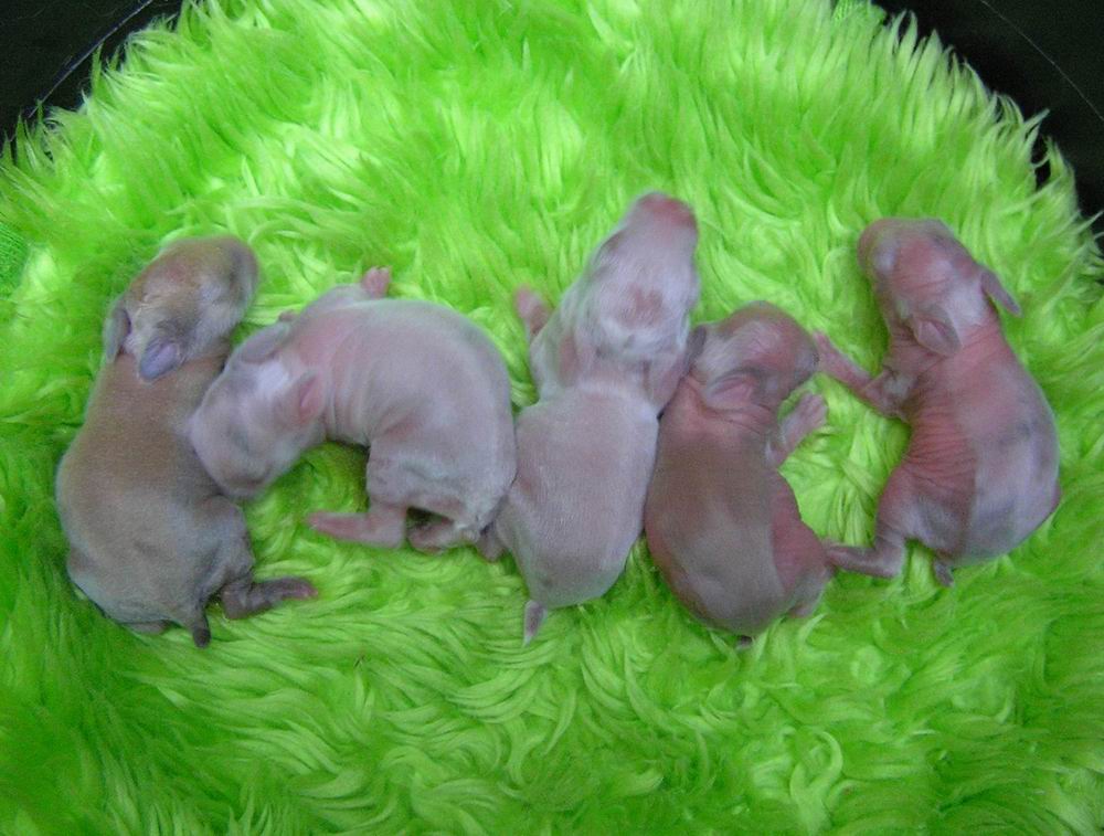 3 dny - je krásně vidět typický znak teddy - klín na zádech u dvou králíčků vpravo, ostatní jsou pouze dlouhosrstí kříženci s teddy genem |