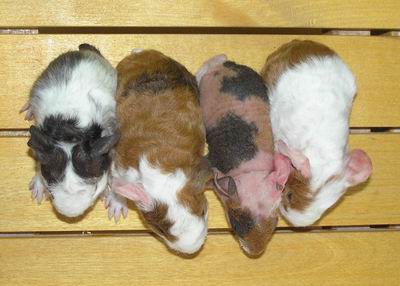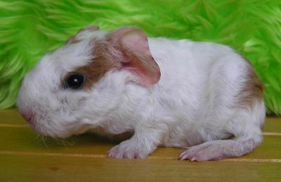 | Xanthos z Horeckých vrchů genový skinny, barva bílá s ? - to teda fakt netuším, černá je spíš sable a ty šimlované plochy? Oko je tmavé 53g - kluk |