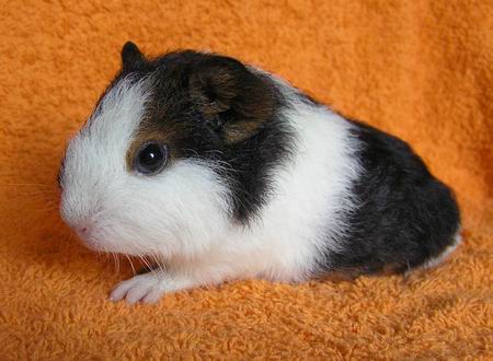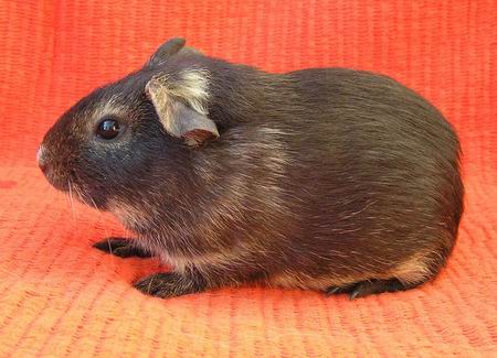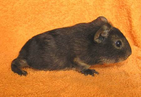 Kaplan Valmont Preston z Horeckých vrchů (No tady trošku nechápu tu kombinaci. Ve standardu plemen je kombinace krémové a černé možná a je to kresba "lux černá" a na diskuzi je každý pranýřovaný za to když prohlásí, že má černé morče s krémovou, chytráci tvrdí, že to prý není černá, ale sable. Sable má ovšem ohnivé oko a když je tato kombinace možná v této kresbě, proč není možná u strakatého morčete? Viz moje genovka Georgina, která je krásně černá s krémovou a bílou a oko má tmavé. No nikdo není dokonalý a pokud studujete genetiku morčat a řídíte se rodokmenem, potom z toho musíte být divocí, protože stejně má většina morčat v rodokmenu špatný zápis barvy v předcích. Někdy má totiž problém s určením i dospělý, natož desetileté děcko, které může mít také chovatelskou stanici.) Musím ale přiznat, že tento genáček nějakou krásně černou nemá. U něj bych to spíše odhadovala na sable. Což je ale fuk, protože genáči stejně nejdou registrovat. |
